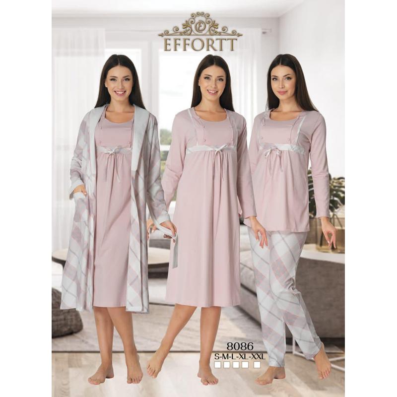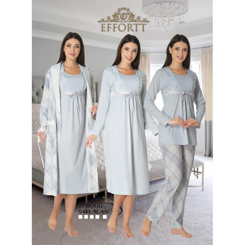 - Pijama altı, üstü, gecelik ve sabahlık olmak üzere 4 parçadan oluşuyor.