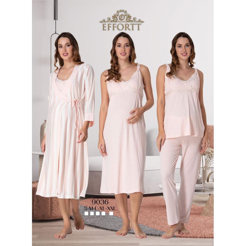 - Pijama altı, üstü, gecelik ve sabahlık olmak üzere 4 parçadan oluşuyor.