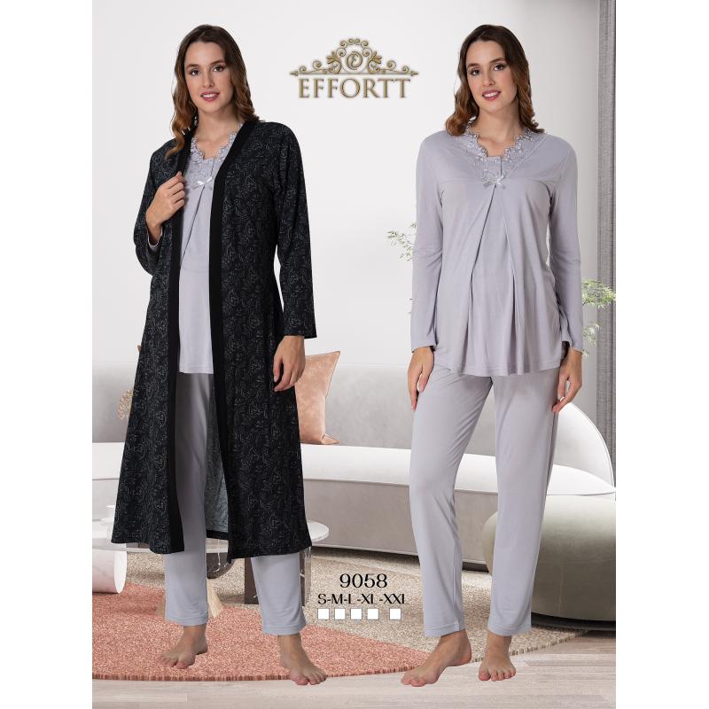 - Pijama altı, üstü ve sabahlık olmak üzere 3 parçadan oluşuyor.